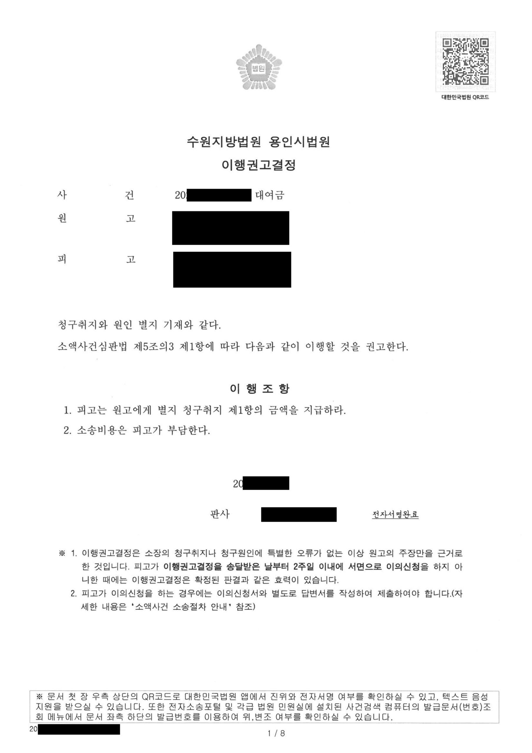[대여금소송] 빌려준 돈 3,000만 원, 이행권고결정으로 전액 회수한 사례